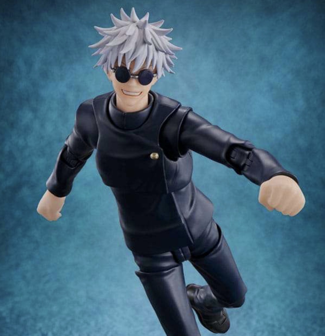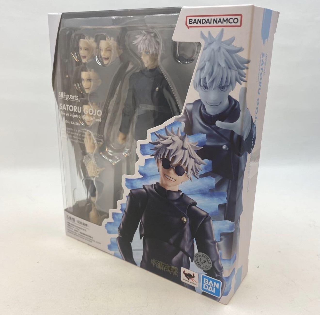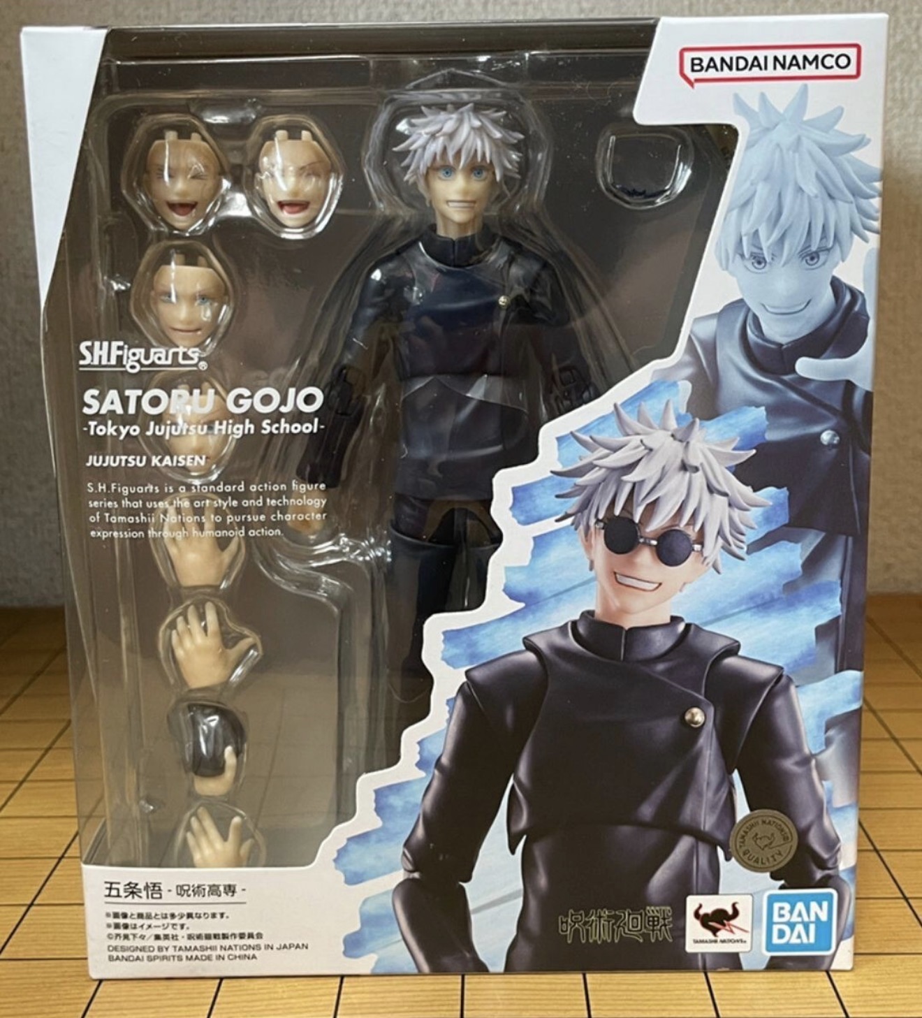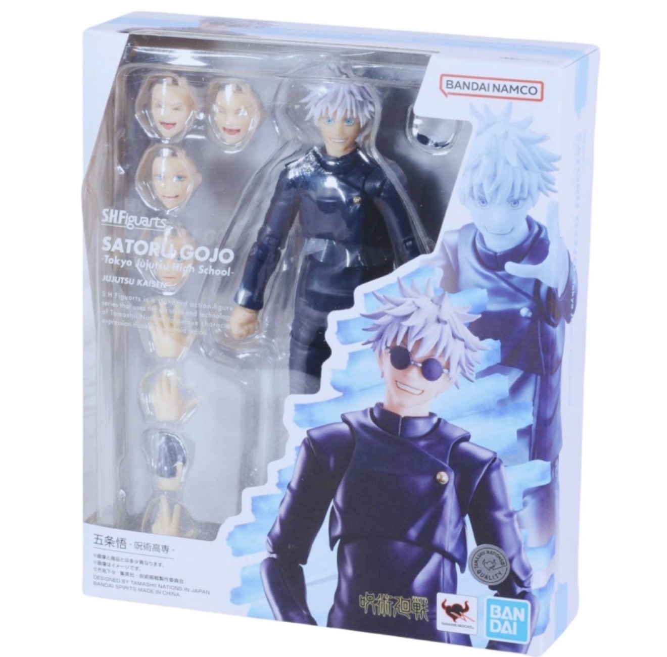 Bandai S.H. Figuarts Satoru Gojo action figure from the Jujutsu Kaisen series. Series: S.H.Figuarts Character: Satoru Gojo -Tokyo Jujutsu High School- Manufacturer: Bandai Spirits / Tamashii Nations Features: The figure is fully articulated and comes with multiple interchangeable hands and faces, as well as sunglasses, to recreate various poses and expressions from the anime. Material: Made of ABS and PVC plastic.