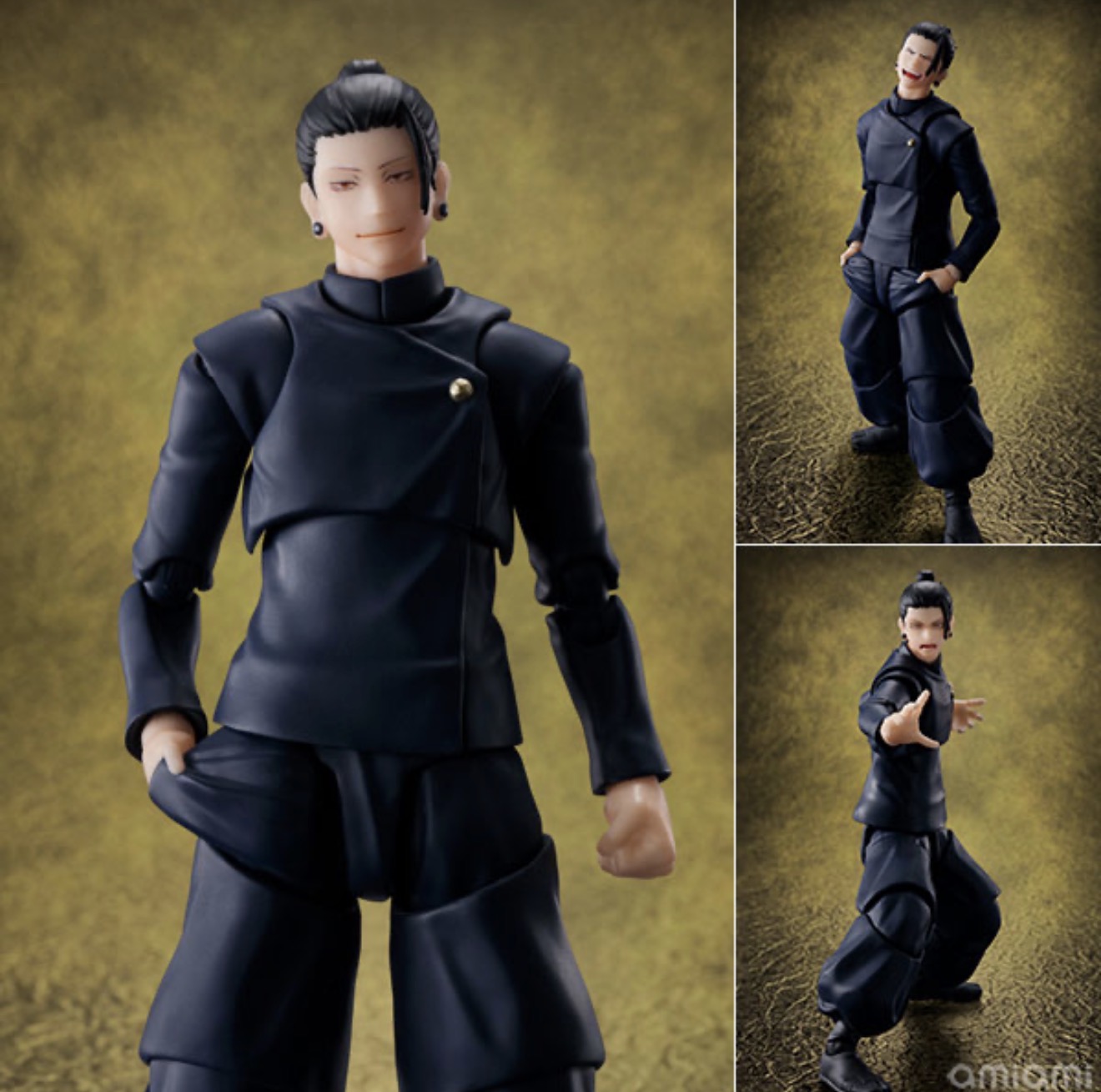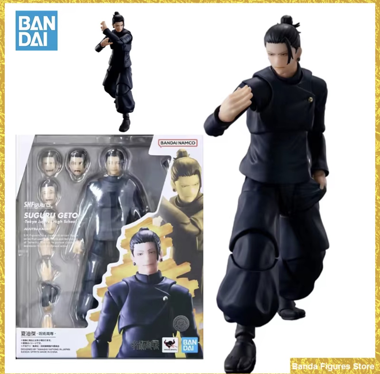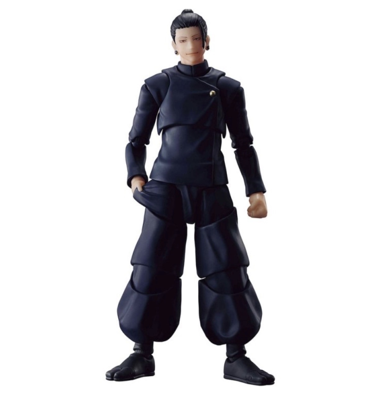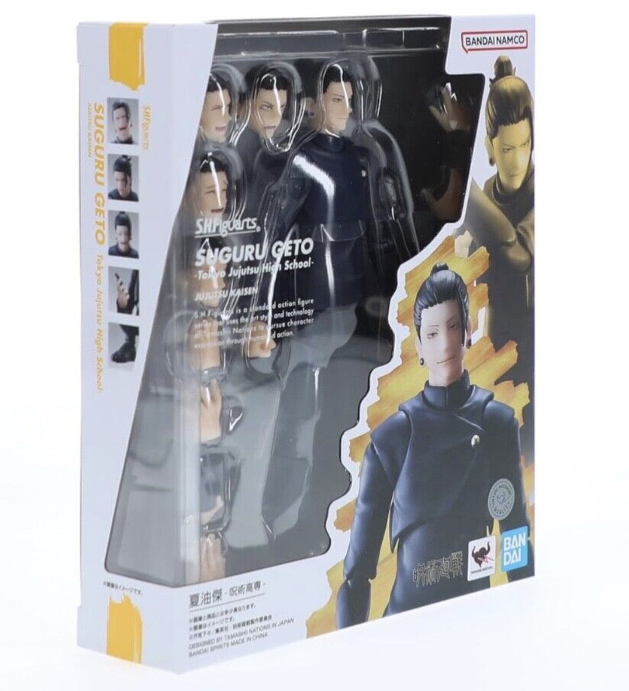 S.H.Figuarts Suguru Geto action figure from the anime and manga series Jujutsu Kaisen. Specifically, this is the "-Tokyo Jujutsu High School-" version, released by Bandai Spirits. Product Line: S.H.Figuarts, a popular action figure series known for its articulation and character expression. Character: Suguru Geto, as he appeared during the "Hidden Inventory" and "Premature Death" arcs of the anime's second season. Accessories: The figure includes multiple interchangeable face parts, hands, and parts to display his hands in his pockets, allowing for various poses. Manufacturer: Bandai Spirits (Tamashii Nations).
