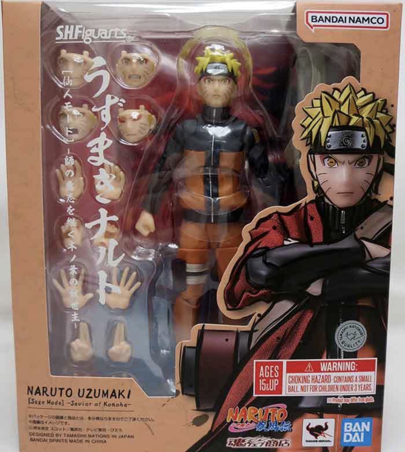 Bandai S.H.Figuarts Naruto Uzumaki [Sage Mode] -Savior of Konoha- action figure. This collectible is part of the S.H.Figuarts line by Tamashii Nations, a brand of Bandai Spirits, known for highly detailed and articulated figures based on popular anime and manga series like Naruto Shippuden. Manufacturer: Bandai Spirits Series: S.H.Figuarts (Tamashii Nations) Character: Naruto Uzumaki in his Sage Mode attire Approximate Height: 145mm (about 5.7 inches)